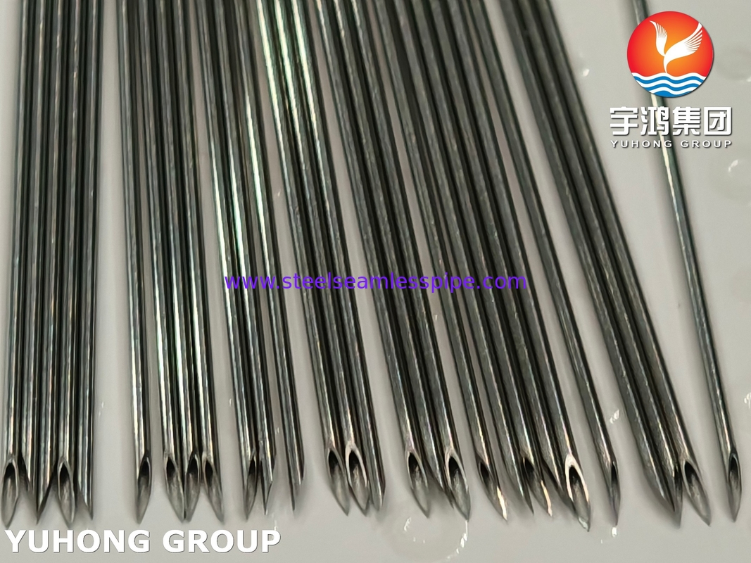 أنبوب إبرة من الفولاذ المقاوم للصدأ هو أنبوب إبرة صغير التجويف، مسحوب على البارد، مصنوع من الفولاذ المقاوم للصدأ 304 أو 316L نظرًا لمقاومته الممتازة للتآكل، والقوة، والتوافق الحيوي. يستخدم أنبوب الإبرة هذا على نطاق واسع في الأجهزة الطبية والفضاء والسيارات والمجوهرات وصناعات تجهيز الأغذية وما إلى ذلك. كما أنه شائع لدى صانعي النماذج. يتم إنتاج أنابيب الإبر من شرائط الفولاذ المقاوم للصدأ. تتم معالجة شرائط الفولاذ المقاوم للصدأ عن طريق الاندماج الحراري بالليزراللحام في أنابيب شعرية، وتتم معالجة هذه الأنابيب عن طريق تقليل القطر والسمك، والتلدين، والتنظيف، والتقويم والقطع. ثم يتم طحن الأنابيب إلى أنابيب إبر ذات نقاط إبر مختلفة. تحافظ هذه العملية على تفاوتات ضيقة في OD و ID. يشار إليها عادة باسم أنبوب الإبرة. تضمن أنابيب الإبر SUS304 و SUS316L، المتوافقة مع معيار ISO9626، السلامة والدقة والموثوقية في الحقن الطبية.