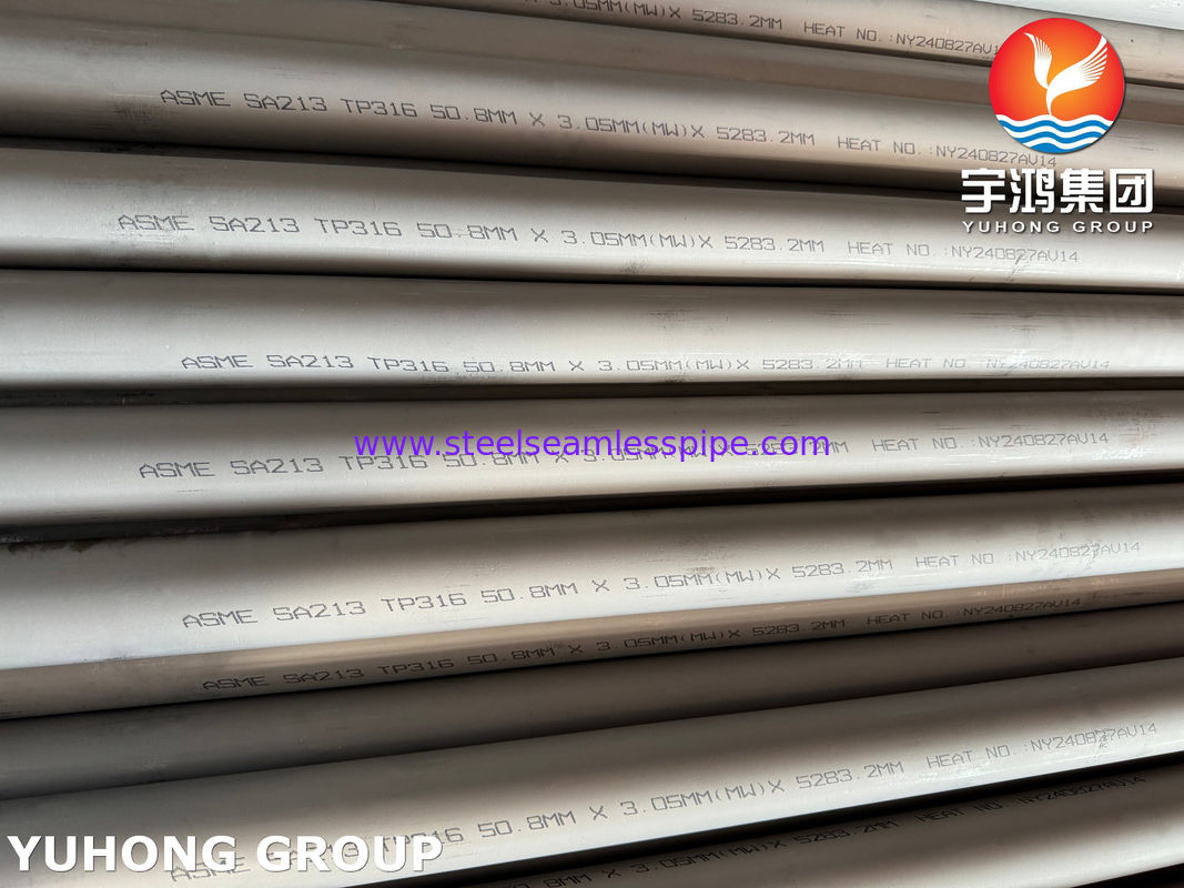 ASME SA213 TP316 S31600 أنبوب بلا مسام من الفولاذ المقاوم للصدأ لمبادل الحرارة